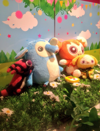 作品や、ぬいぐるみの記念撮影スペースで遊ぶわたし…